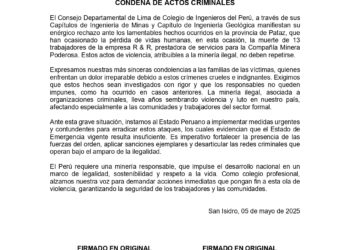 El Consejo Departamental de Lima de Colegio de Ingenieros del Perú, a través de sus Capítulos de Ingeniería de Minas ...