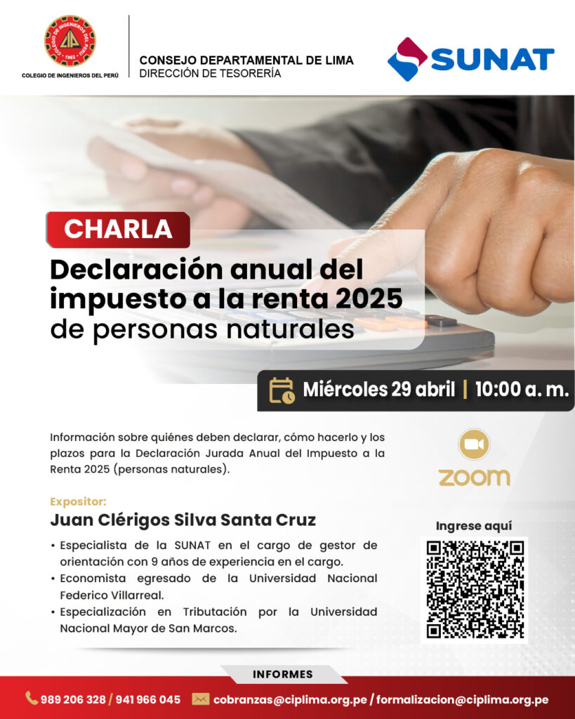 La Dirección de Tesorería del CIP Lima, organiza esta charla virtual a cargo de Juan Clérigos Silva Santa Cruz.