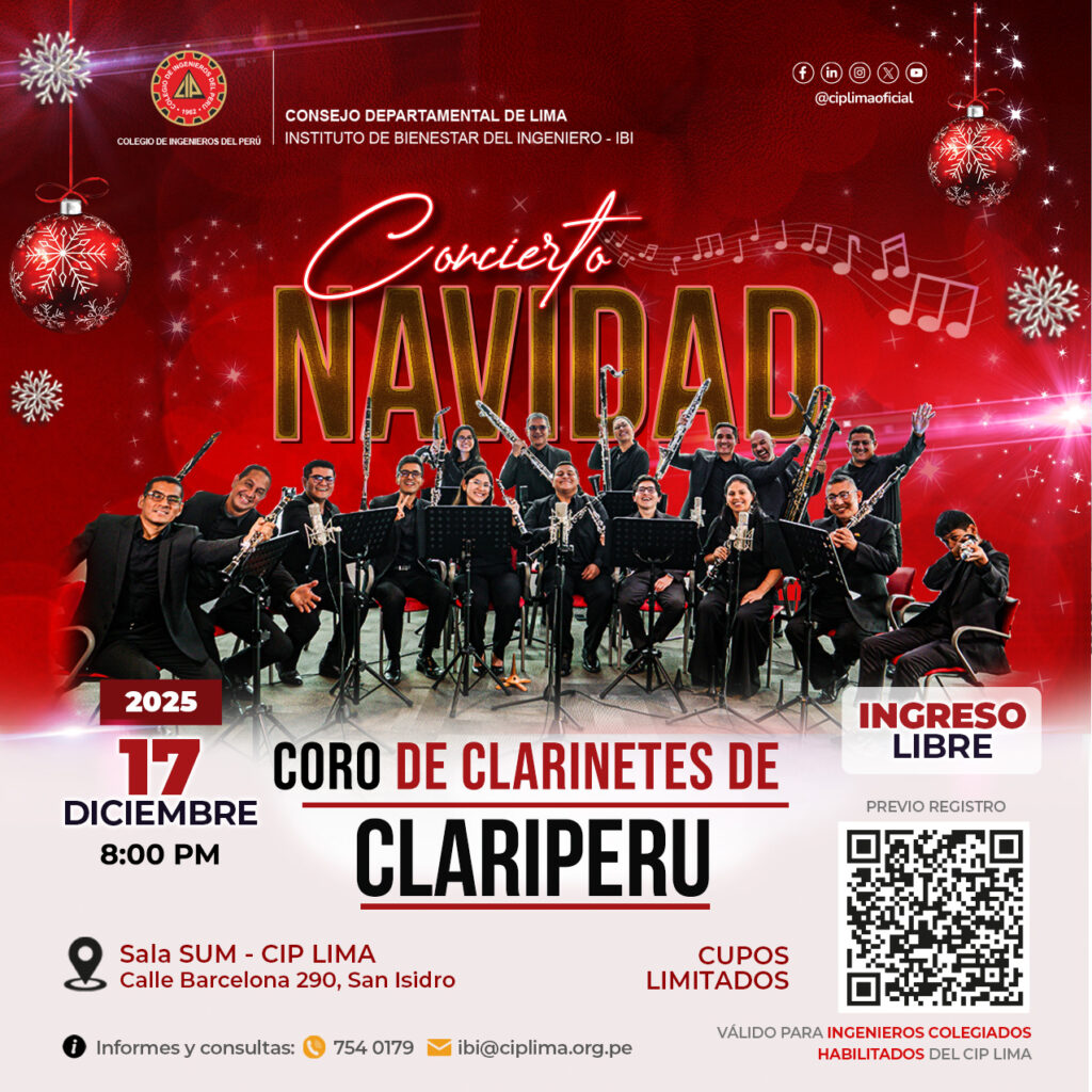 El Consejo Departamental de Lima del Colegio de Ingenieros del Perú te invita a vivir una mágica noche navideña llena de música, alegría y espíritu festivo.
