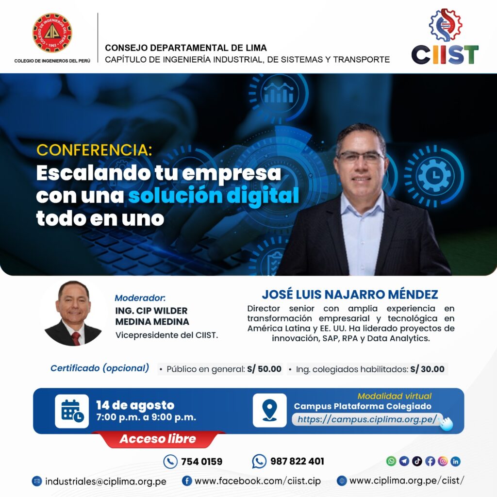 El Capítulo de Ingeniería Industrial, de Sistemas y Transporte del CIP Lima organiza esta conferencia virtual que tiene como objetivo aprende a optimizar tus operaciones con herramientas que mejoran la eficiencia.