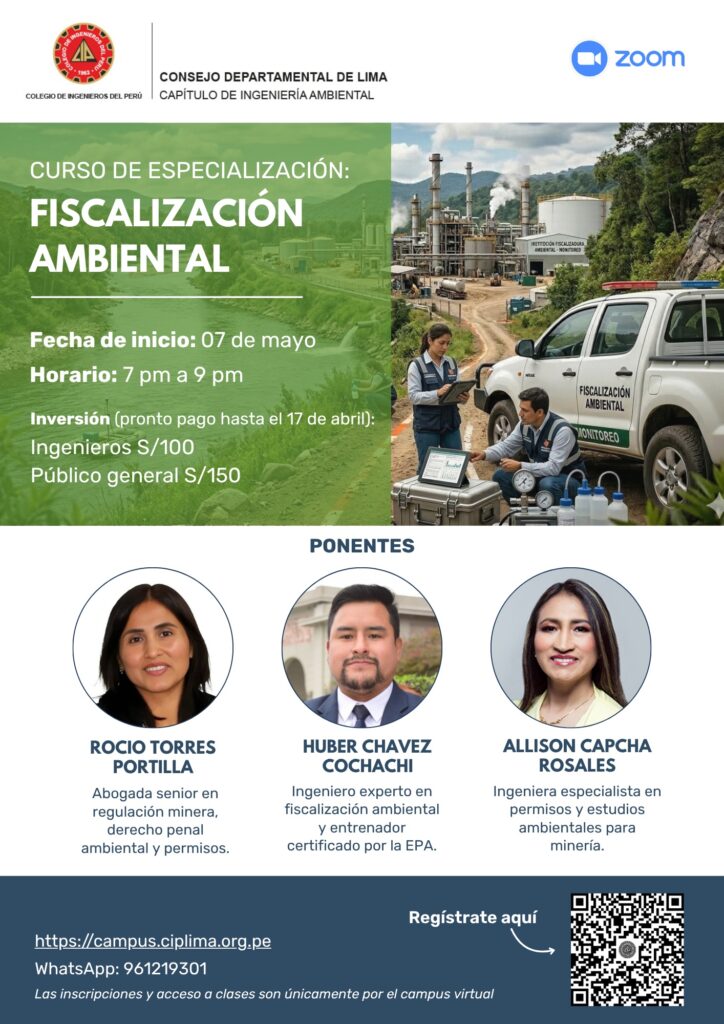 Curso de Especialización: ¨Fiscalización Ambiental¨ / Fecha de inicio: 07 de mayo