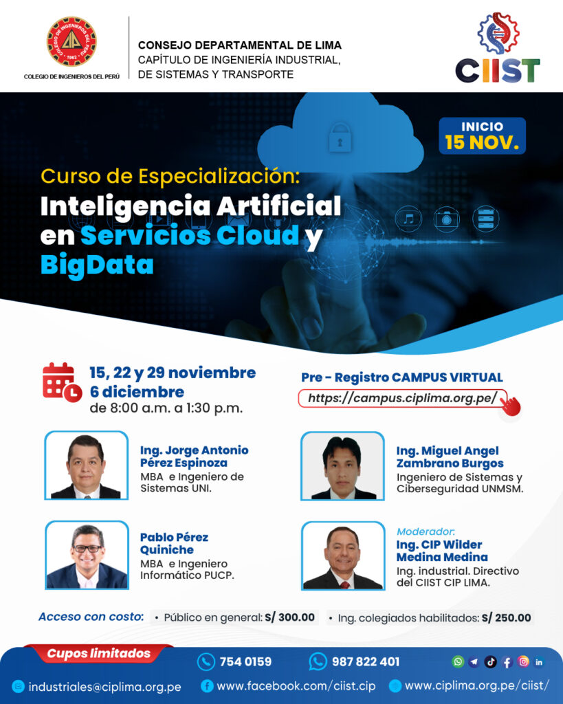 - Ingenieros colegiados CIP: S/. 250