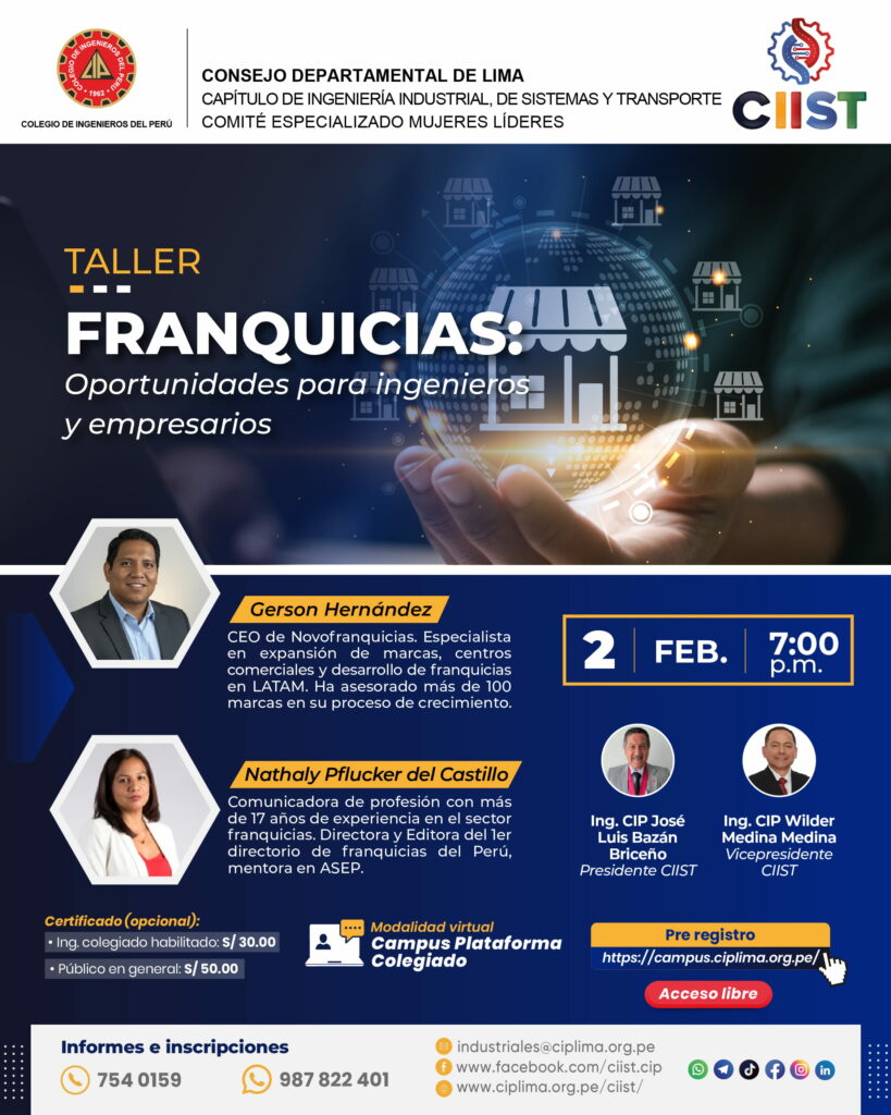 Taller: ¨Franquicias – Oportunidades para ingenieros y empresarios¨/ Lunes 2 de febrero