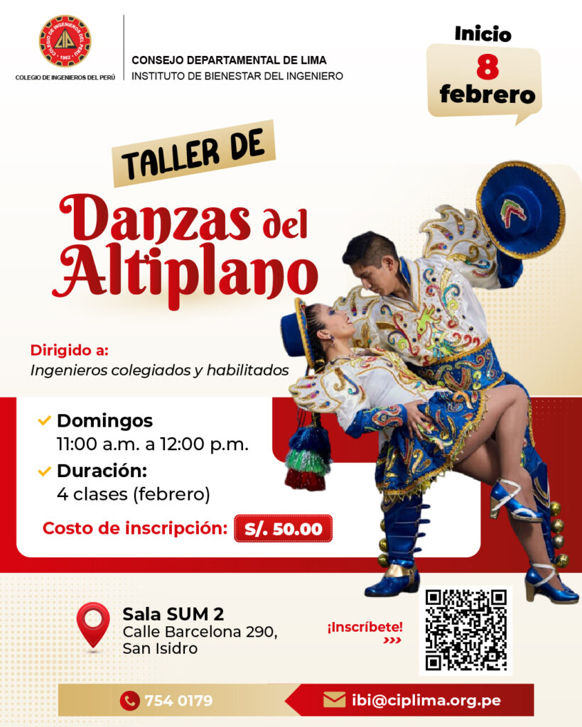 El Instituto de Bienestar del Ingeniero del Consejo Departamental de Lima – CIP presenta su Taller de Danzas del Altiplano, un espacio para aprender, disfrutar y conectarte con una de las danzas más alegres.