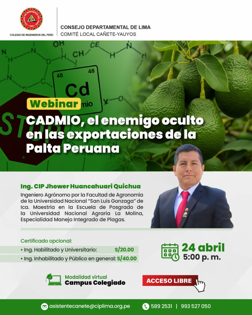 Webinar: ¨CADMIO, el enemigo oculto en las exportaciones de la Palta Peruana¨ / Viernes 24 de abril