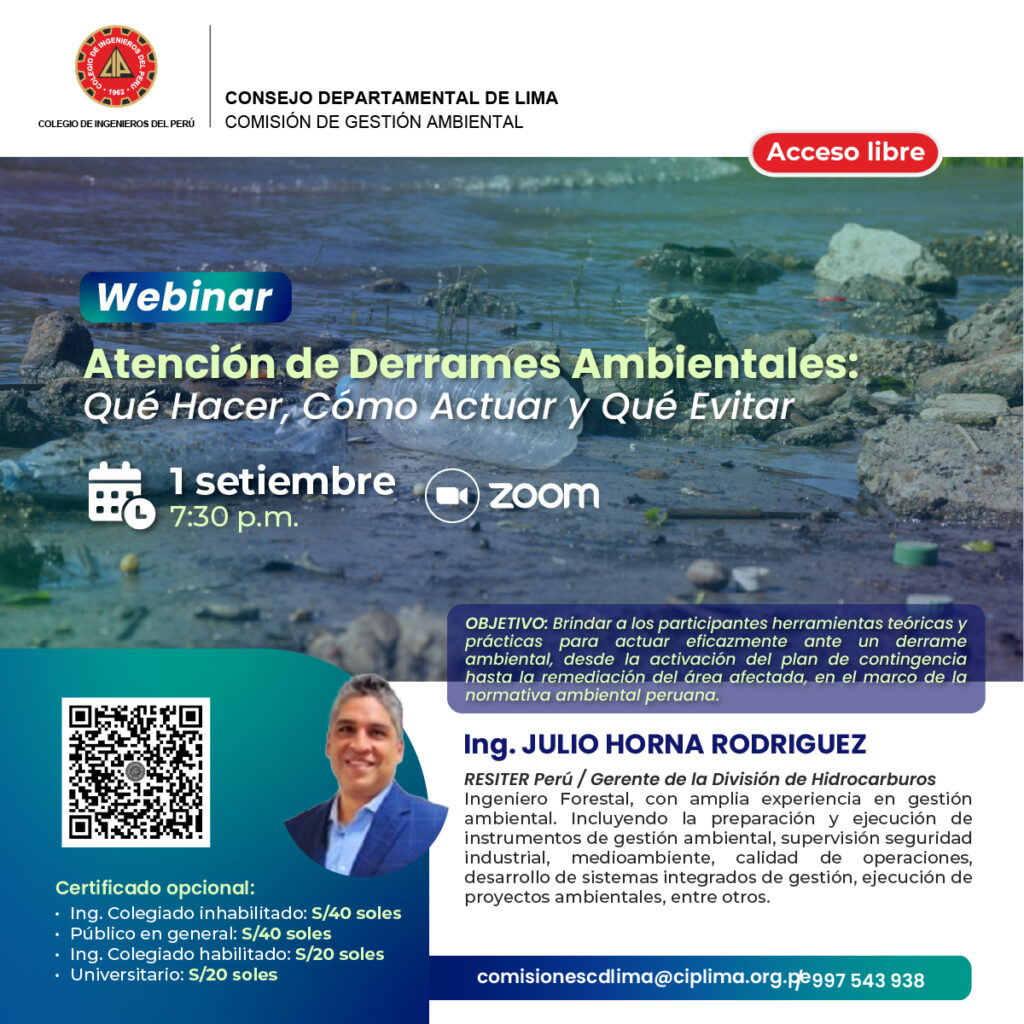 El Capítulo de Ingeniería Ambiental los invita a participar de este webinar, a cargo del Ing. Julio Horna Rodriguez. Acceso libre.