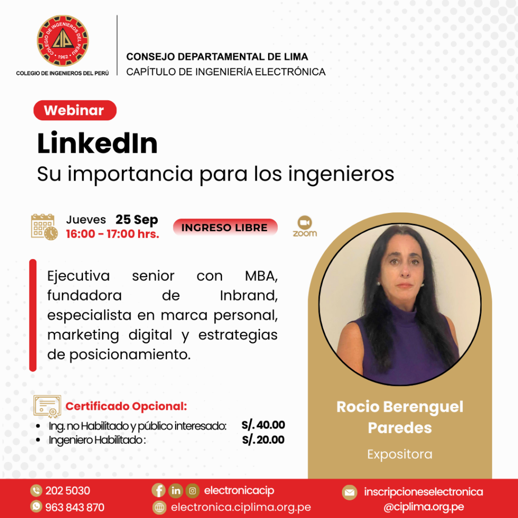 Webinar: «LinkedIn – Su importancia para los ingenieros» / Jueves 25 de Septiembre – 4:00 p.m.