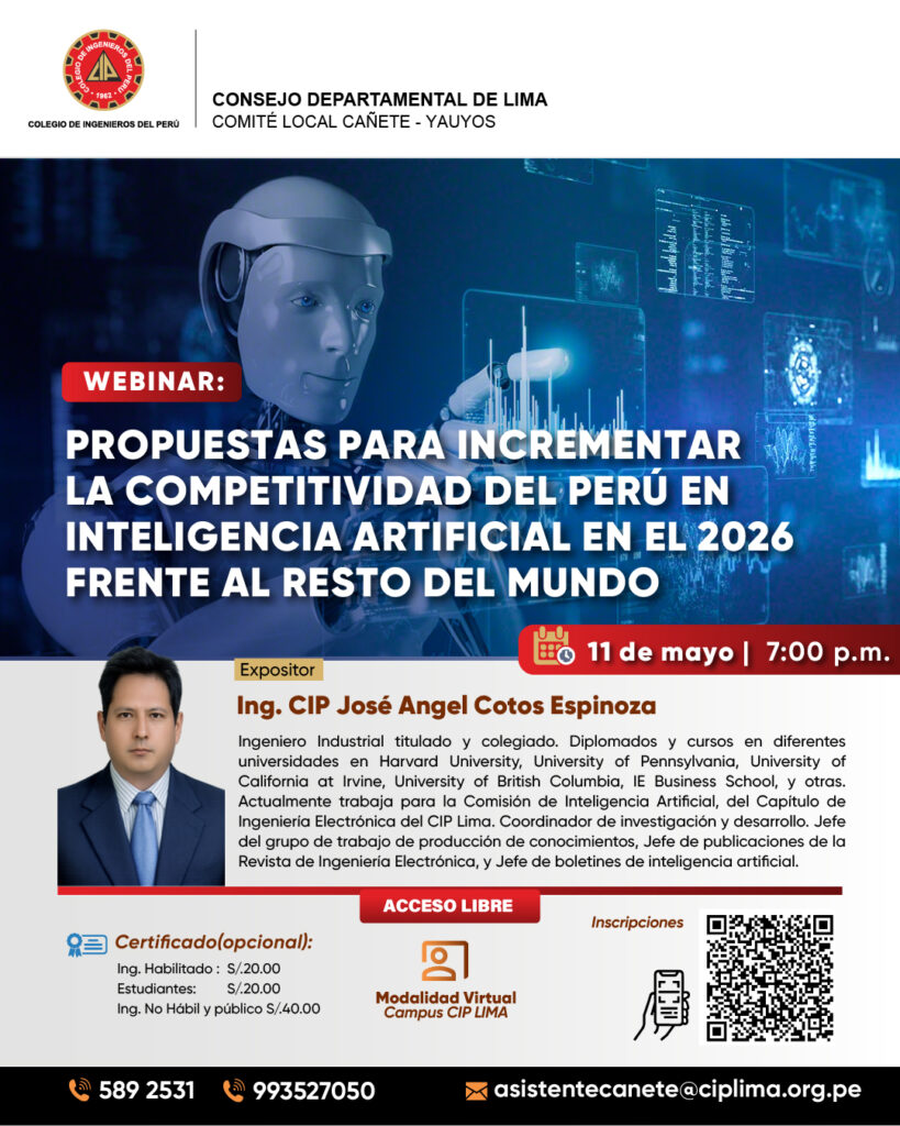 Webinar: “Propuesta para incrementar la competitividad del Perú en inteligencia artificial en 2026 frente al resto del mundo”/ Viernes 11 de mayo